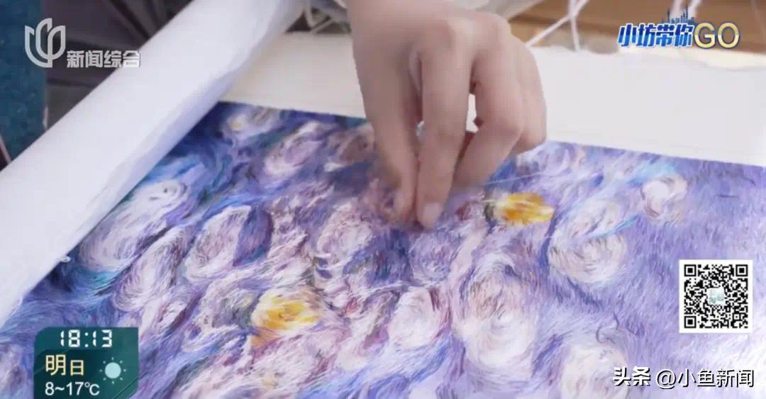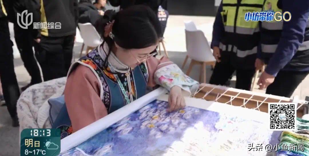 嘉定苏绣非遗代表性传承东说念主阿紫手持针线危坐展区C位,针线牵引间织出一幅莫奈的《睡莲》,成为围场中荒谬的一景。