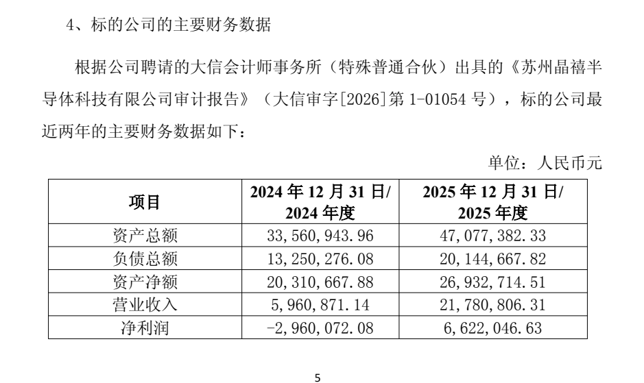 2025年,晶禧半导体齐全买卖收入2178.08万元,齐全净利润662.20万元。
