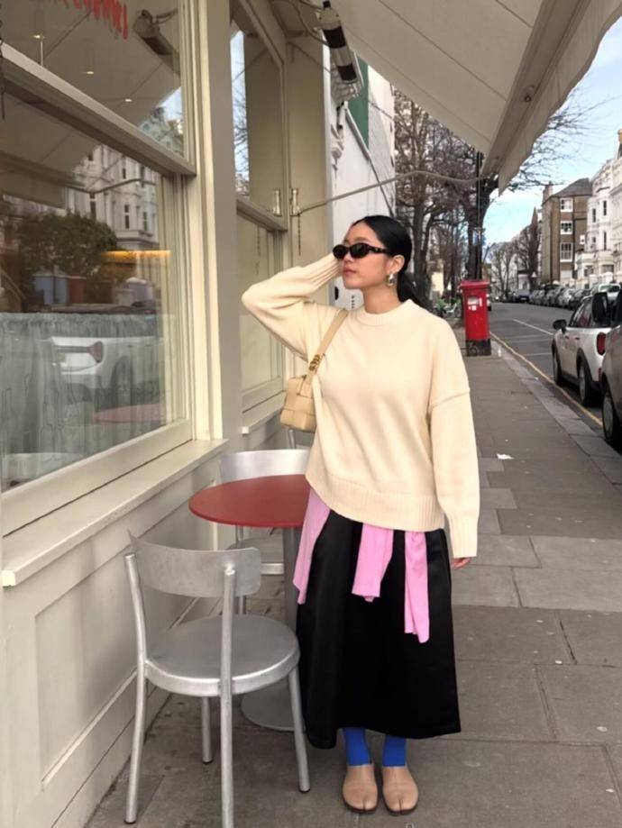 色调是 timetymec 造型里的点睛之笔,她擅长用低充足底色搭配亮堂色块,制造视觉焦点却不显得杂沓。奶白毛衣配玄色缎面半裙时,腰间垂落的粉色布条成了通盘造型的呼吸感开端;宝蓝色毛衣与格纹半裙的组合,在暖光下显得善良又亮眼,哪怕是基础款牛仔裤,也能通过亮黄色蕾丝半裙的叠穿,转眼跳出千里闷。这种 “小面积撞色” 的手段,既裁减了色调独霸的难度,又能让合座造型更有脉络,相配稳妥想要尝试亮色却怕出错的平凡东说念主。